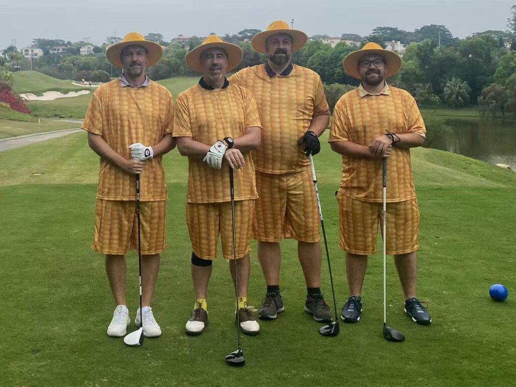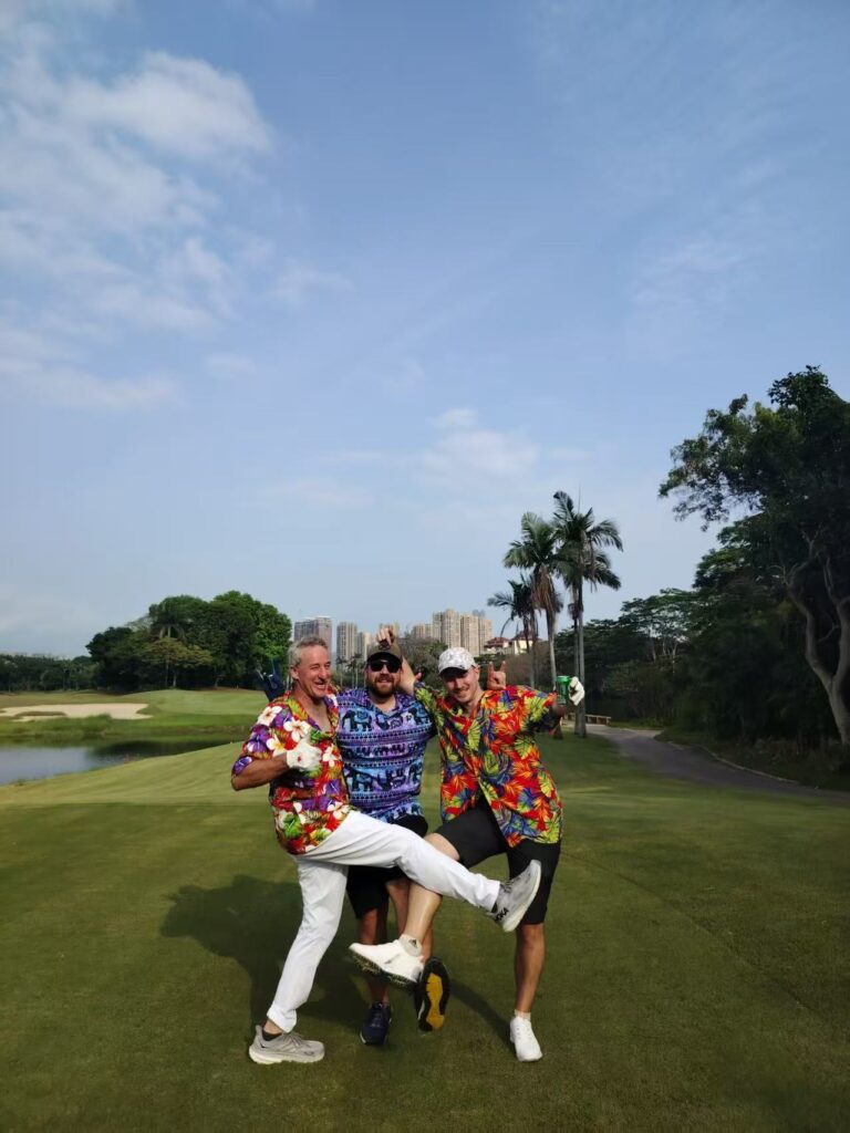 “Oi, pessoal! Aqui é o Juan o brasileiro do grupo! Sim, aquele que trocou as chuteiras pelos tacos de golfe! Como ex-jogador de futebol profissional eu pensei que já tinha visto de tudo, mas a China e o golfe me surpreenderam de um jeito que eu nunca imaginei. Ainda sou novato no golfe e no Chubbs, mas cada tacada errada e cada risada com vocês têm sido pura alegria. Obrigado por me receberem de braços abertos e por transformarem minhas tentativas desastrosas em momentos inesquecíveis. Mal posso esperar para melhorar meu swing e compartilhar mais histórias (e piadas ruins) com todos vocês! Vamos continuar fazendo dessa nossa jornada no golfe algo incrível! Abraços do Brasil!”